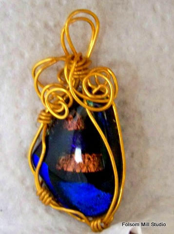 Fused Glass Pendent/Dicrohic Glass also wrapped