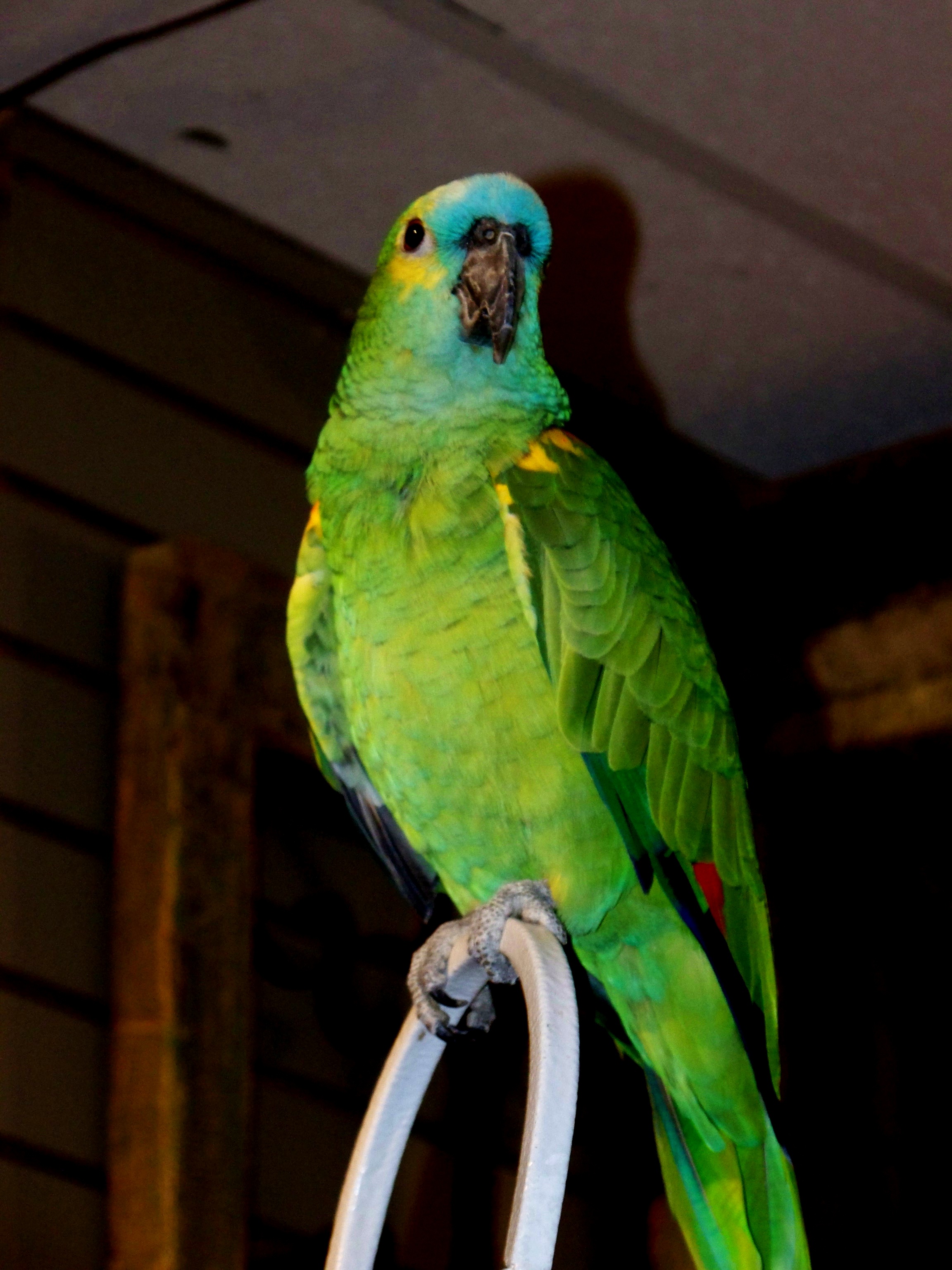 He will say Hello and even laugh when you do.  Not sure he liked my flash but he never stopped talking and even said Good-Bye.
