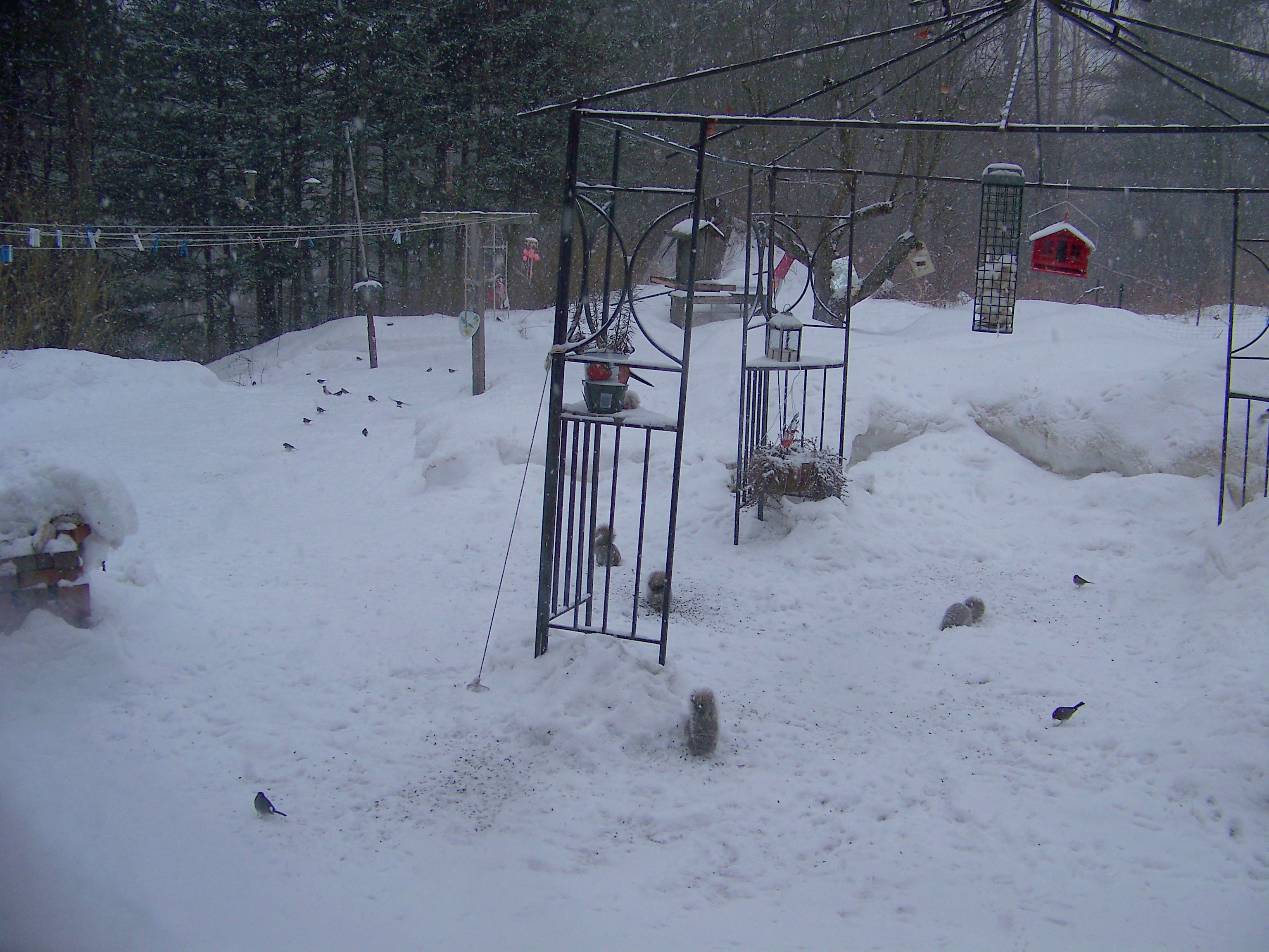 1. Yes and with snow falling today there I am in slippers sweeping away the nasty rain, snow mix to scatter seed for my JUNCOS and squirrels :) but they do appreciate it I know as they nest here and show their young to us dog and cat included :) My hangs out with Momma Turkey and their babies it is just a crazy yard here :) but I love it It was high 30’s last few days today it must be hovering as it wants to rain then snow they say 3 to 6 inches but it will have to snow till tomorrow to see that so I hope they are wrong. :)