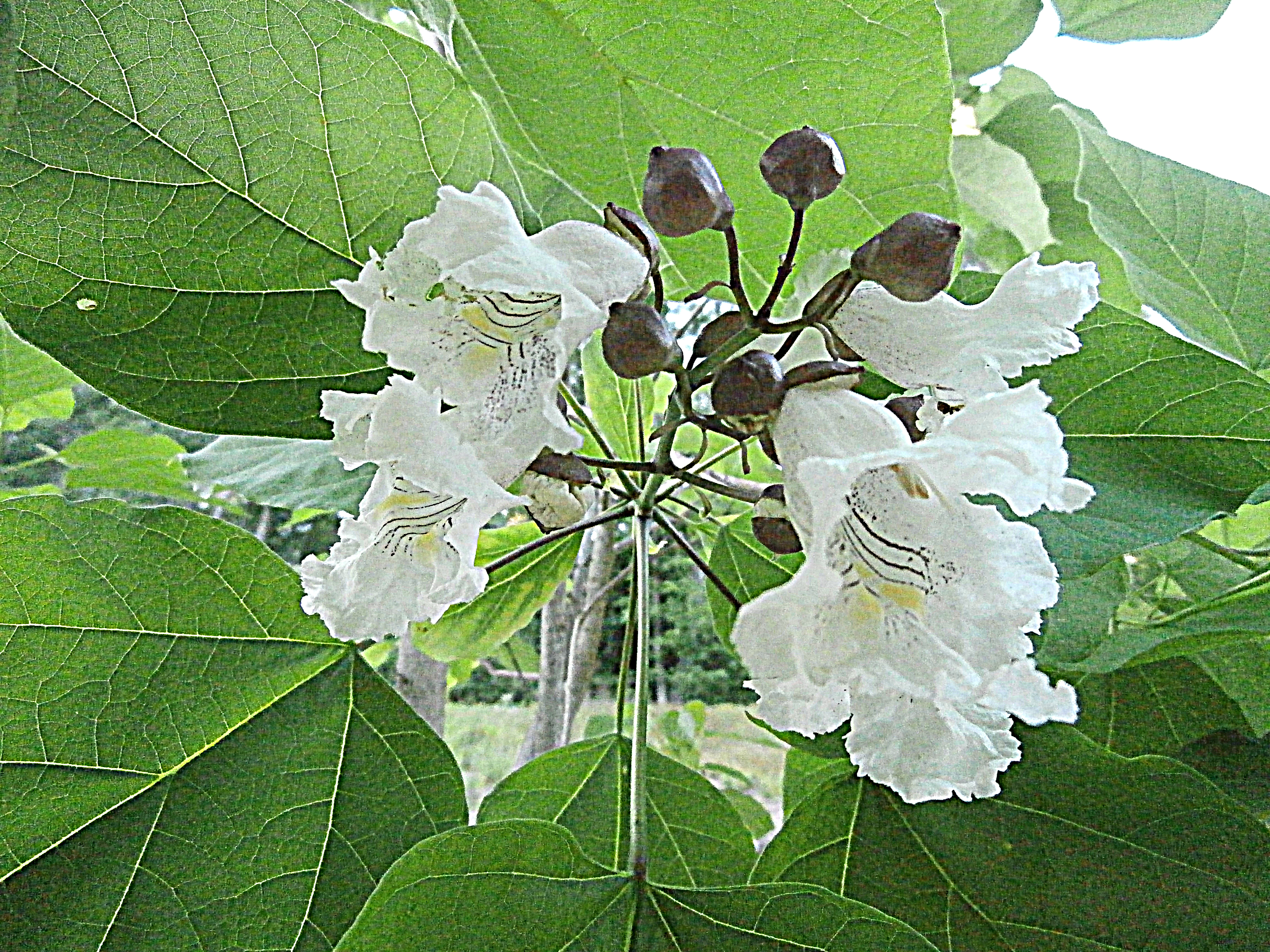 She is going to be pretty as more of these blossoms on the “Toby” Catalpa begin to cover my 5 trees I I have planted on my North side I forgot they may get to 60 feet tall and 20 feet wide yikes when they were little I messed with their tops and tap root hoping I created miniatures :)
