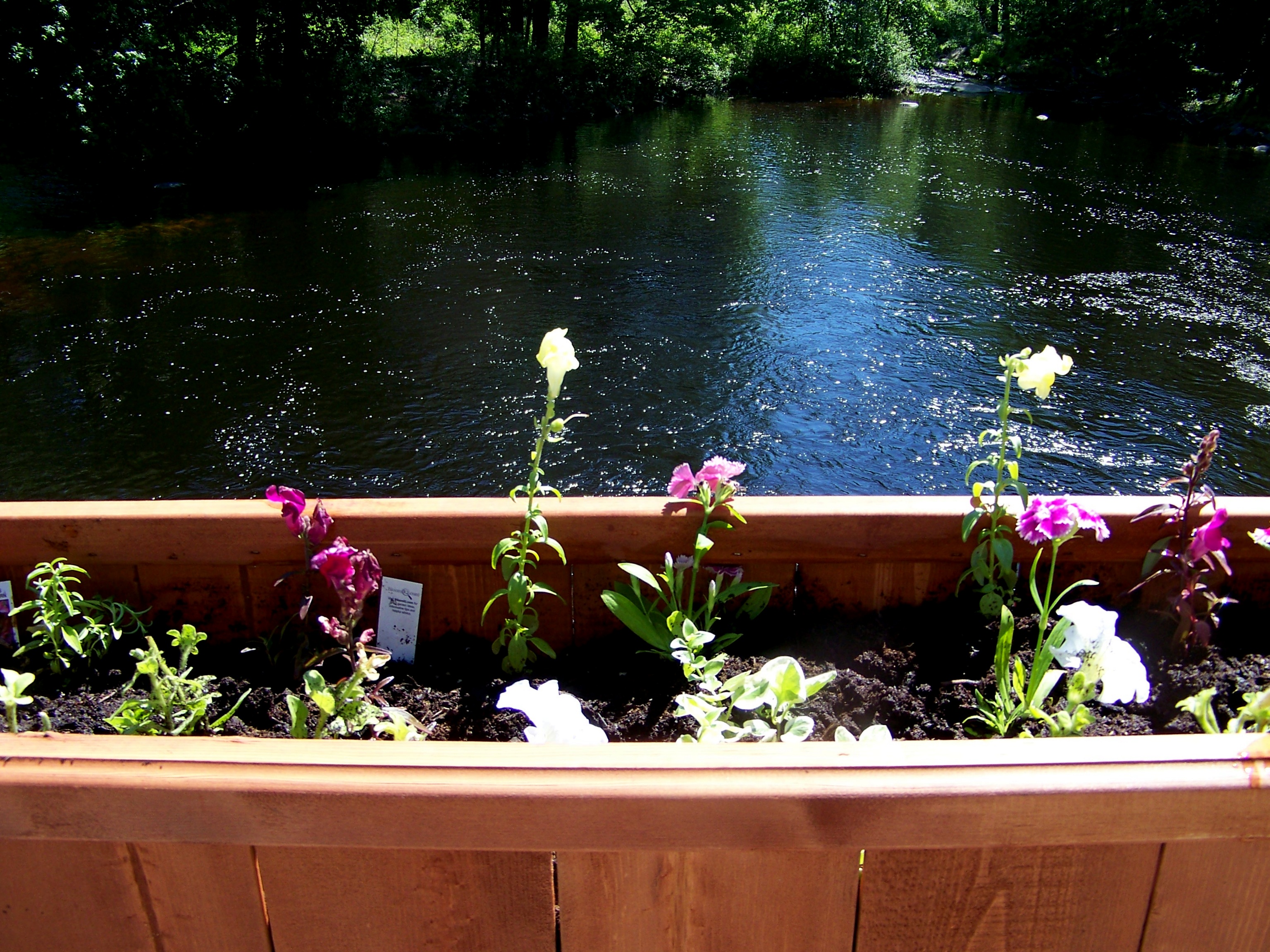 One of the members bought two 40 in long cedar window boxes we filled and put on our granite bridge downtown   so our color draws you through town.