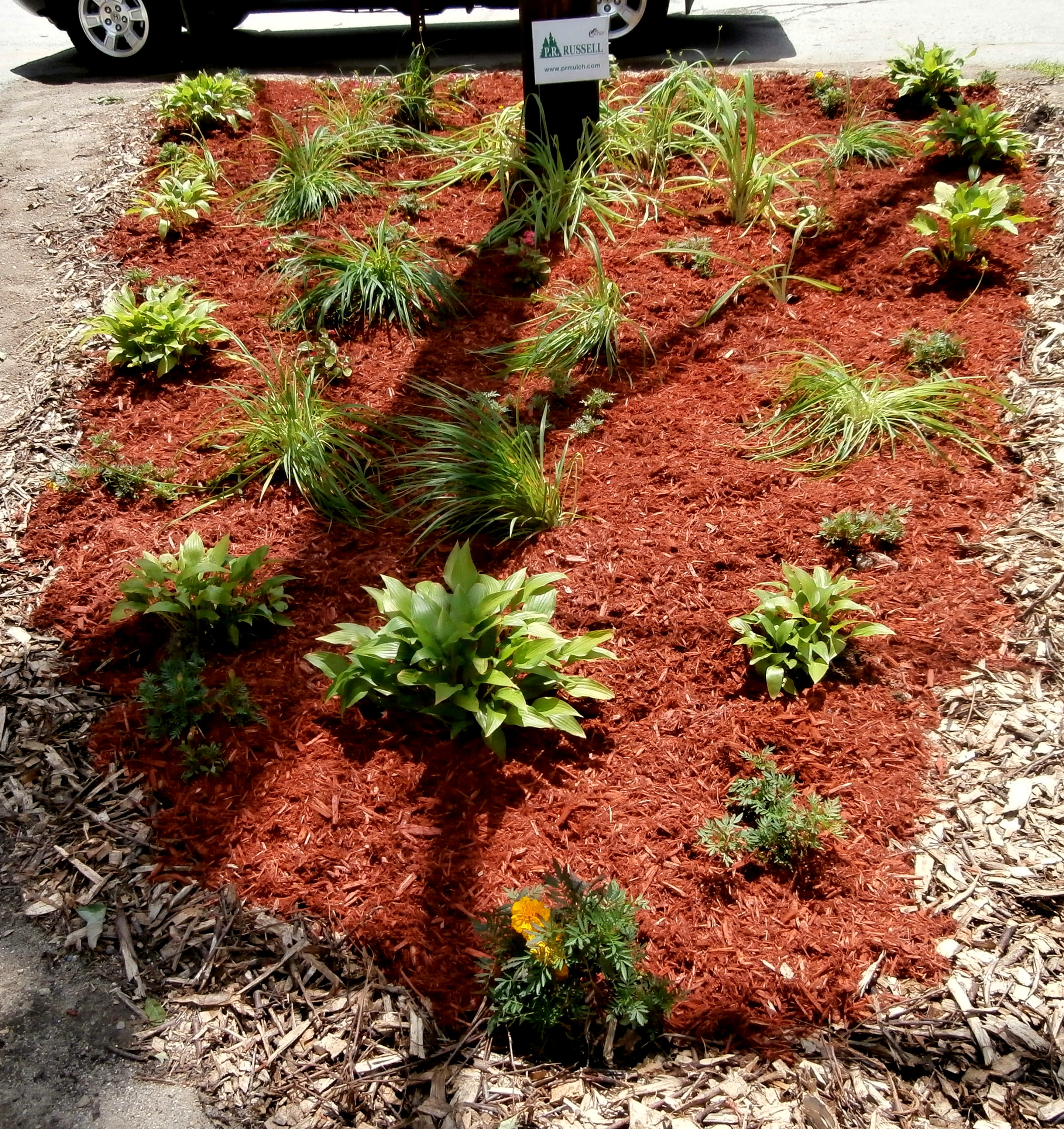 I went to a business the next town over who makes bark mulch, I used to love hauling mulch with my rig to all the local garden centers I miss my truck.  Well back to the story I asked if we could get the wholesale price as we were a tiny garden club next town over and really needed to find the best deal.  She says to me IS FREE GOOD?  You already know by this post   Thank You!   Only deal was they gave me a sign to promote their business well I was all alone to I said yes the deal was made and each and every corner will look the same and only cost Ron gas money to truck it back and forth!