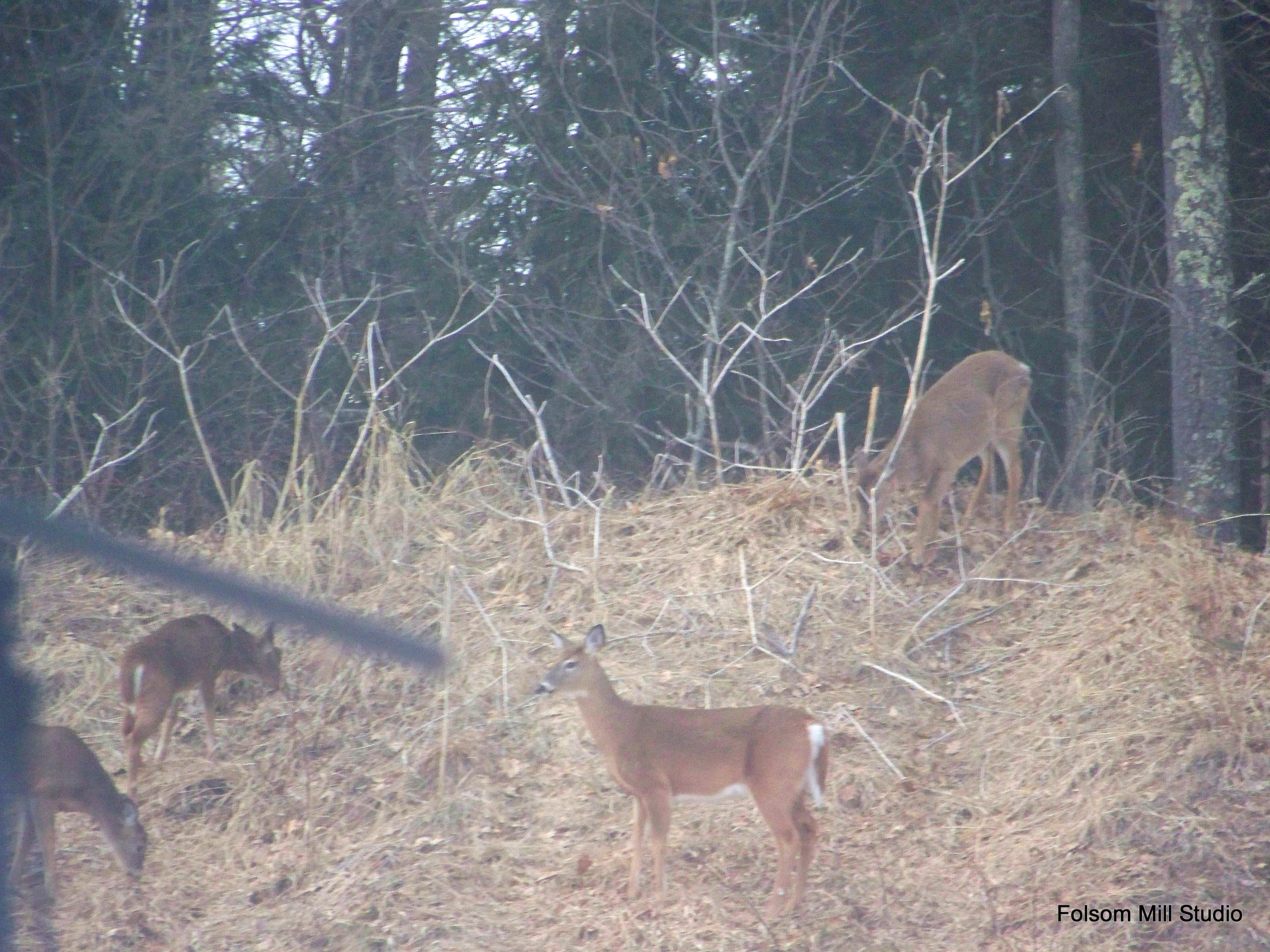 I also have visitor’s not like you all do mine usually are very wild,  here are a few lousy shots through the window as light was leaving for the day.  A Mother Deer and her young.  She looks healthy but not pregnant so maybe there will be no fawn prancing in the yard but I must remember this winter was brutal for not only us but them as well.
