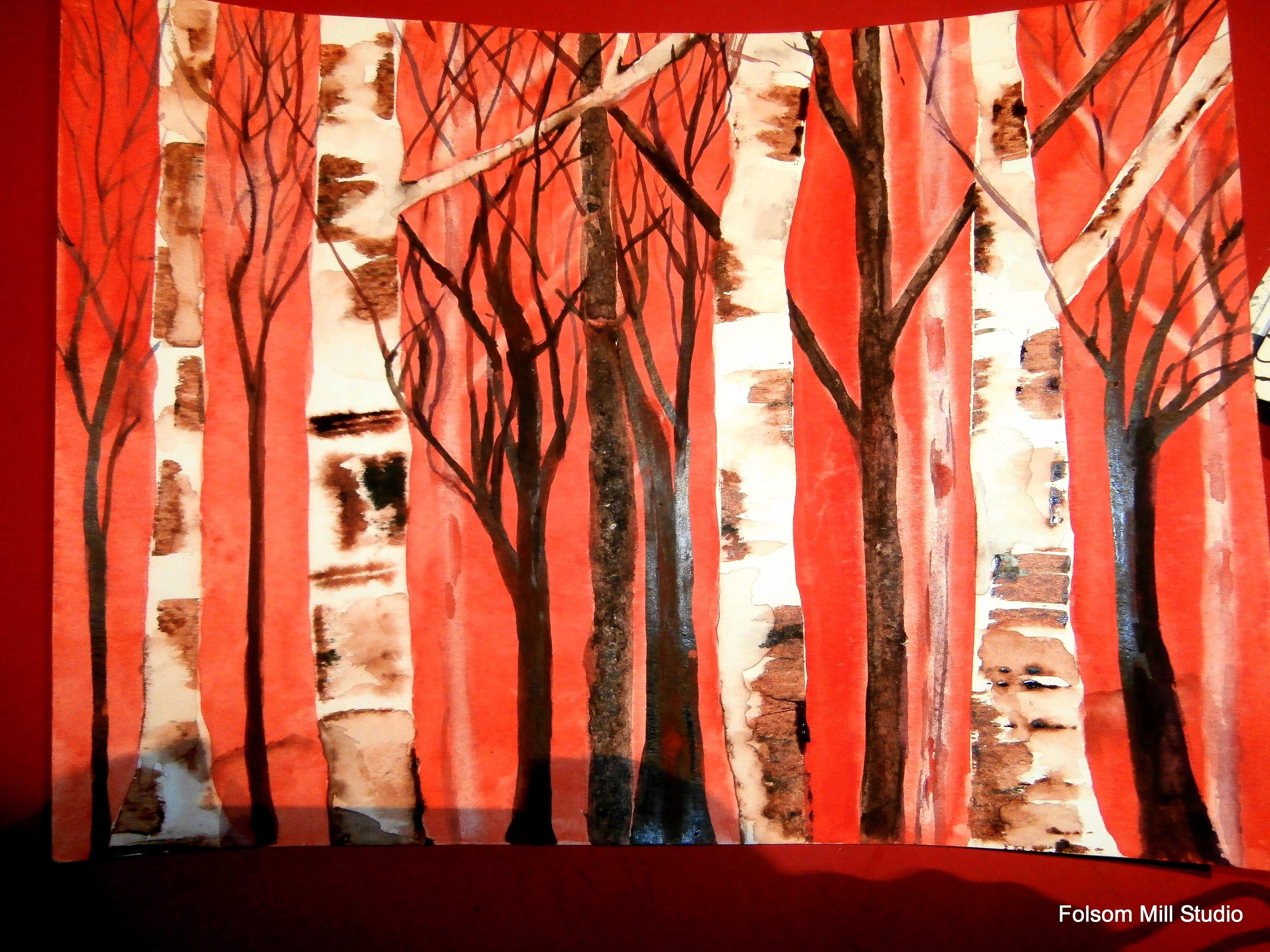 We have been doing some repairs here on the weather-beaten house and 4 more bags of concrete and a few more fires and the yard will be ready to enjoy. I shall share with you two shots of the yard from today May 1,  also a photo of my watercolor I have been trying to get to my liking seems I never am DONE :( I swear I am NOT a perfectionist lol. When I showed my work I have been doing to my teacher Marina(3 classes now)she said “PUT THESE ON FABRIC!” so I did over in my Zazzle store. I added this one of trees onto an oblong pillow.