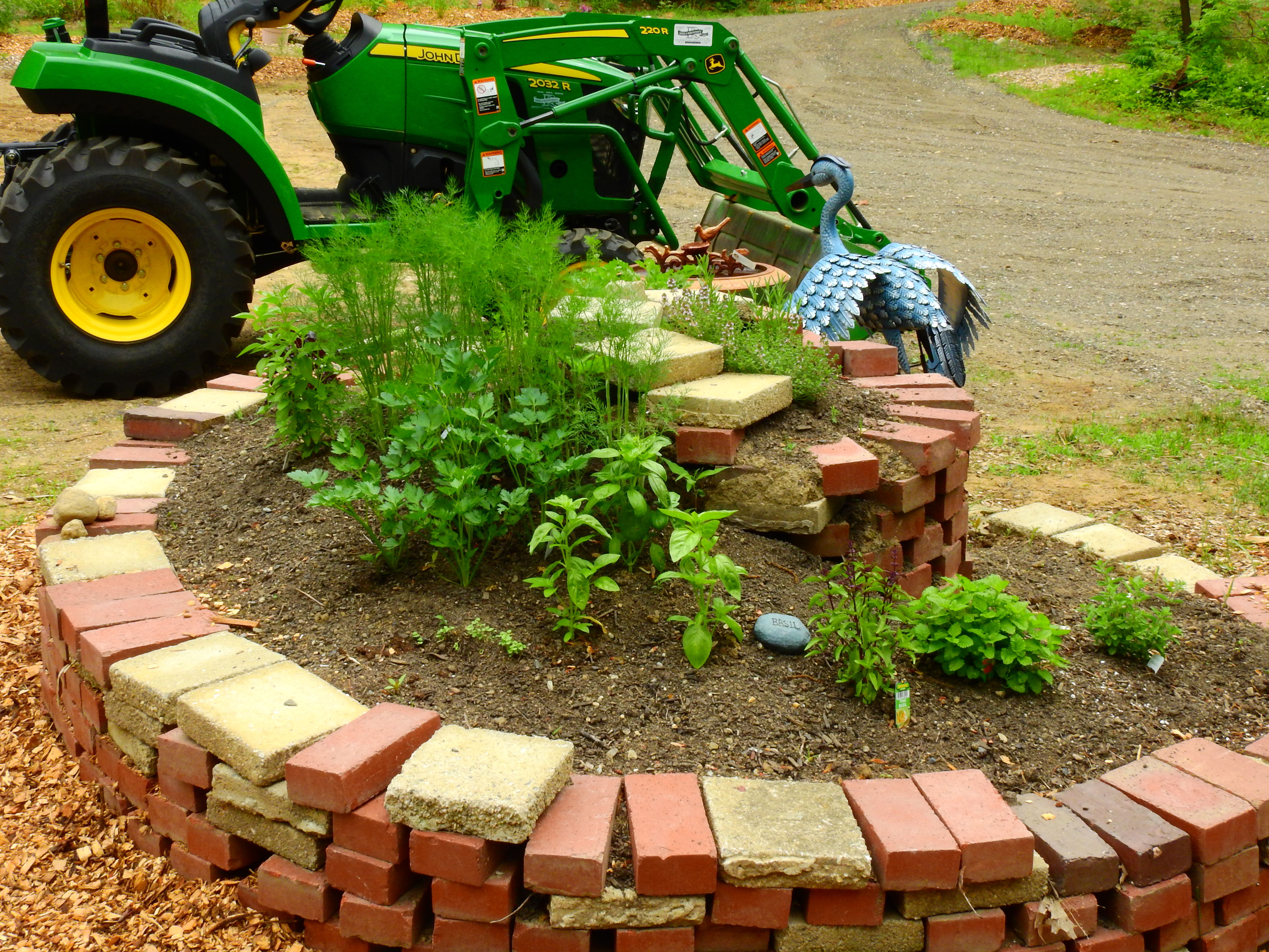 So back to this garden above, it is called a Herb Spiral that I made in 4 hours with that pile and my Deere. I then filled it with super soil and organic compost and let it sit for just about a month to let it settle as the directions I read said to. Then came the plant sales by other garden clubs and I went in search of some lovely items to grow for my kitchen needs. As you can see in a photo I took a week ago they are healthy now to get me back in the mode of eating right. I lost 20 pounds that month I worked the gardens and seem to have found half of it back as sadness I never thought would feel like this really kicked me hard.