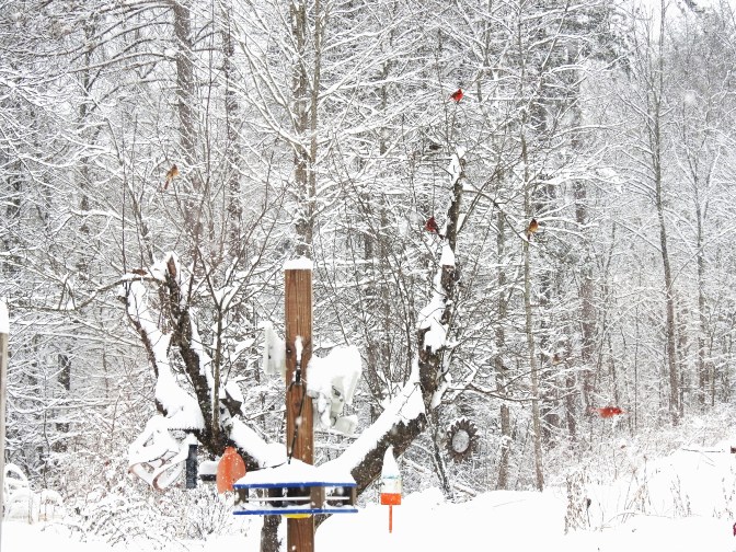 Snow makes for pretty pictures put for those of us old with injuries not so much fun to clean up after and did I tell you about the wind, yikes it was so cold out on my tractor trying to move it and that took 2 days and when it hits 40 on Wednesday, I will start her back up and push back the piles before more snow, rain and ice arrive.