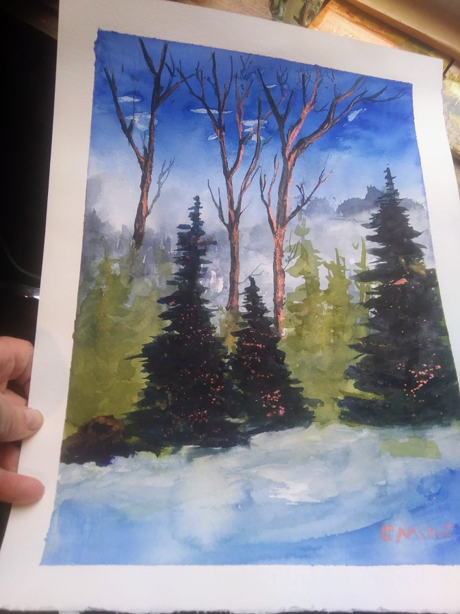 Here is as far as I got on my piece and the 2nd shot is of how it changed once I returned home and painted through the storm yes more snow, I will do another post on.