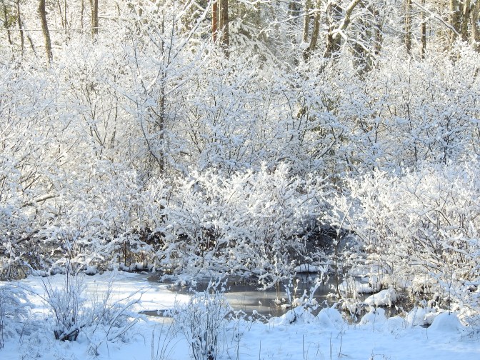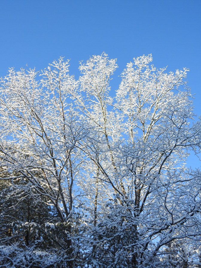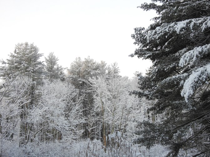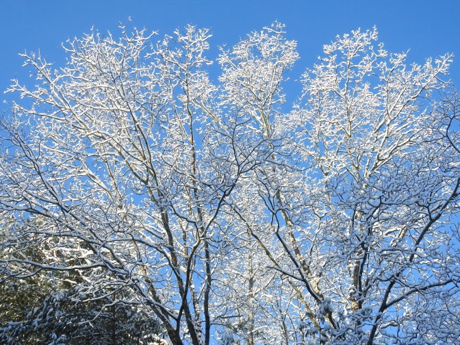 One more parting shot of pretty snow-covered trees as I signoff and get ready for whatever comes our way, though the winds are something I cannot do anything about except to love these trees while I still have them standing.