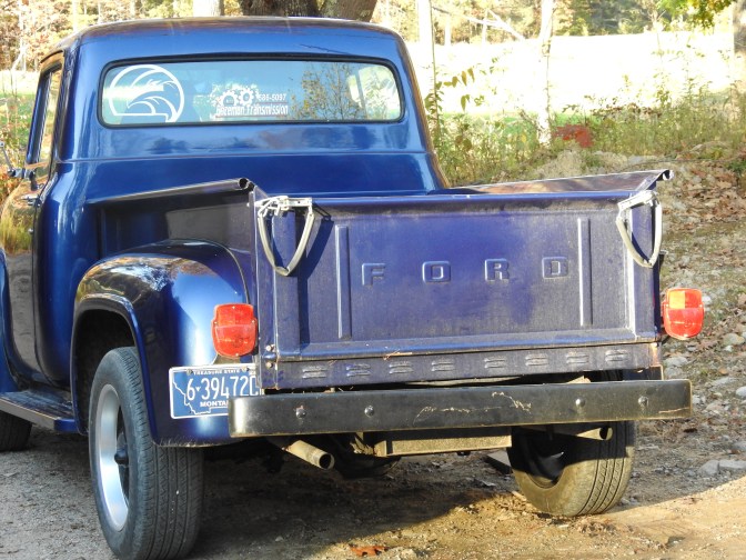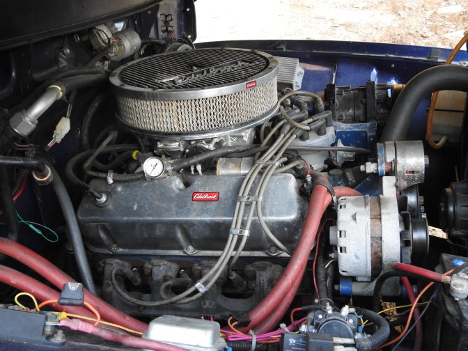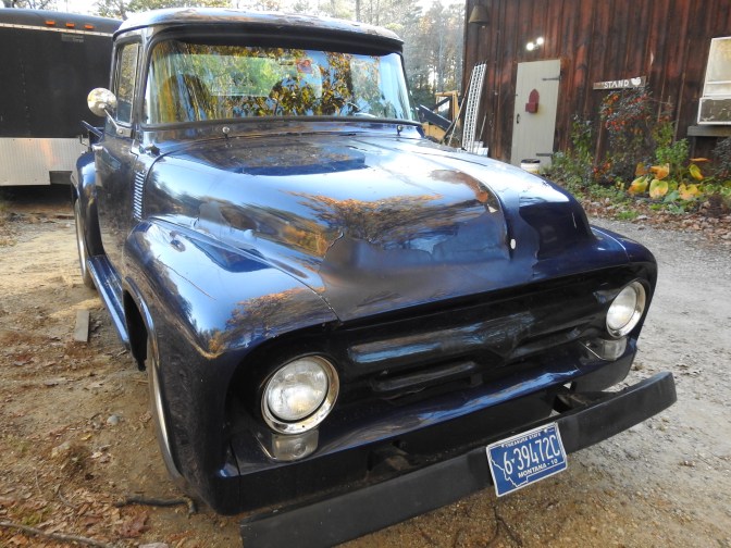 I bought it because I wanted a truck and because it was a Ford with, I am told, a 302 Ford engine. It looks huge to me, yes you can buy oversized valve covers if the engine has been built or you like the look, but they are filthy so off they will come as I search for the engine number to see really what it is sitting in that Dodge Dakota front end clip with rack and pinion steering. Now that is the part, I wish they had not changed, but our 49 Panel truck has an older Camaro front end clip holding the beefed up 350ci Chevy.