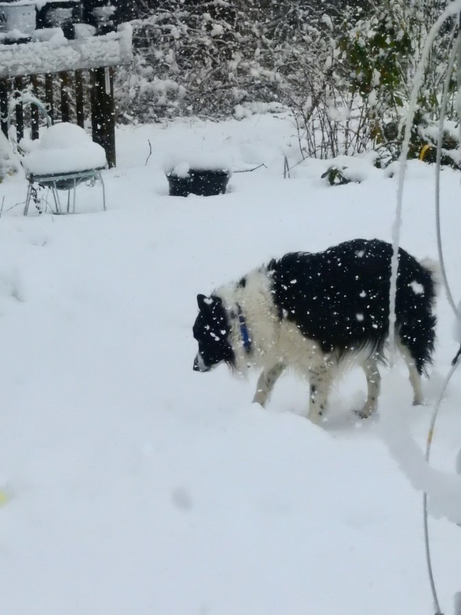 Even Brady, who loves to eat freshly fallen snow, is not impressed by the recent storm though mostly because mom leaves him in the house while she runs the John Deere tractor, to push this mess around.