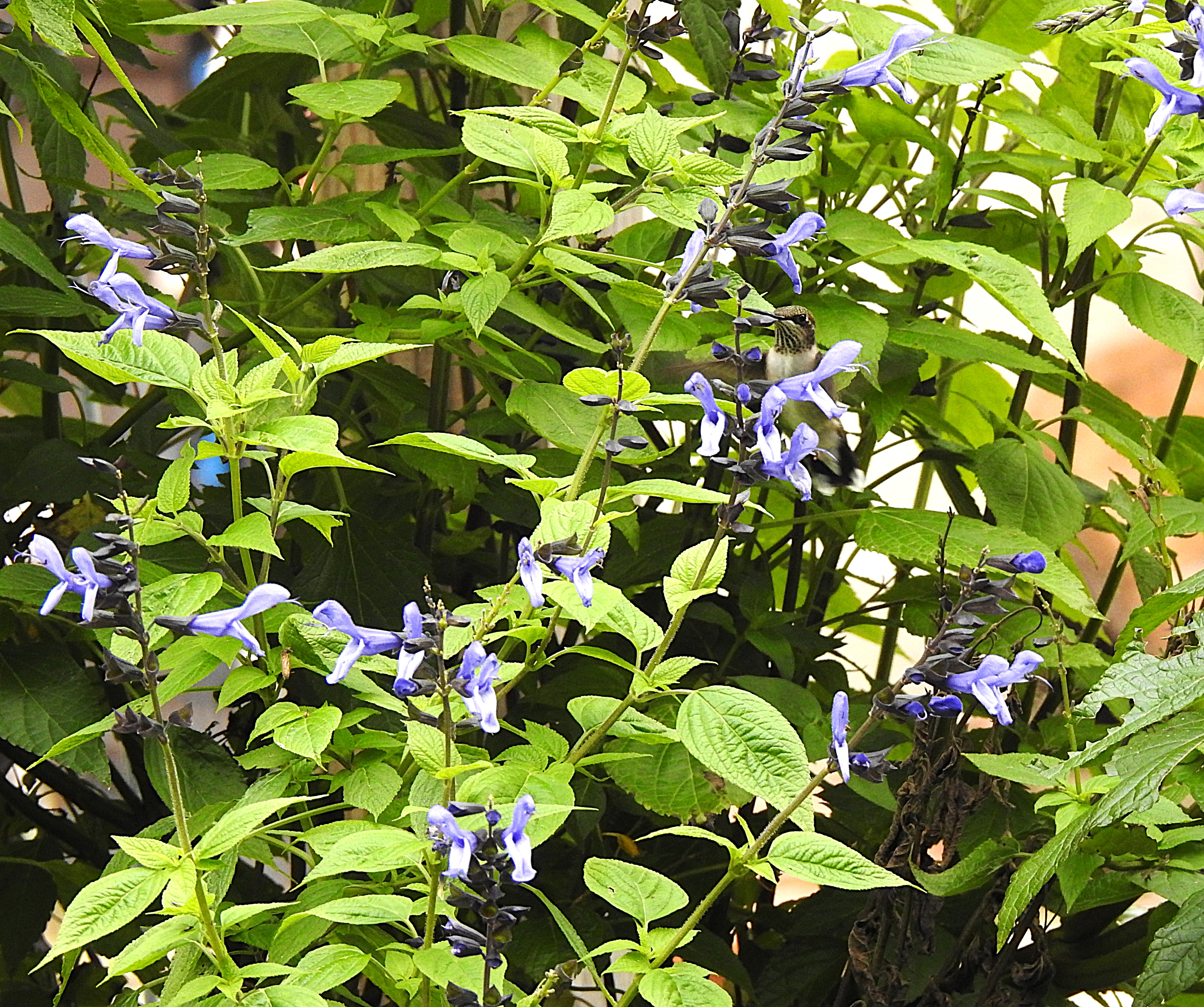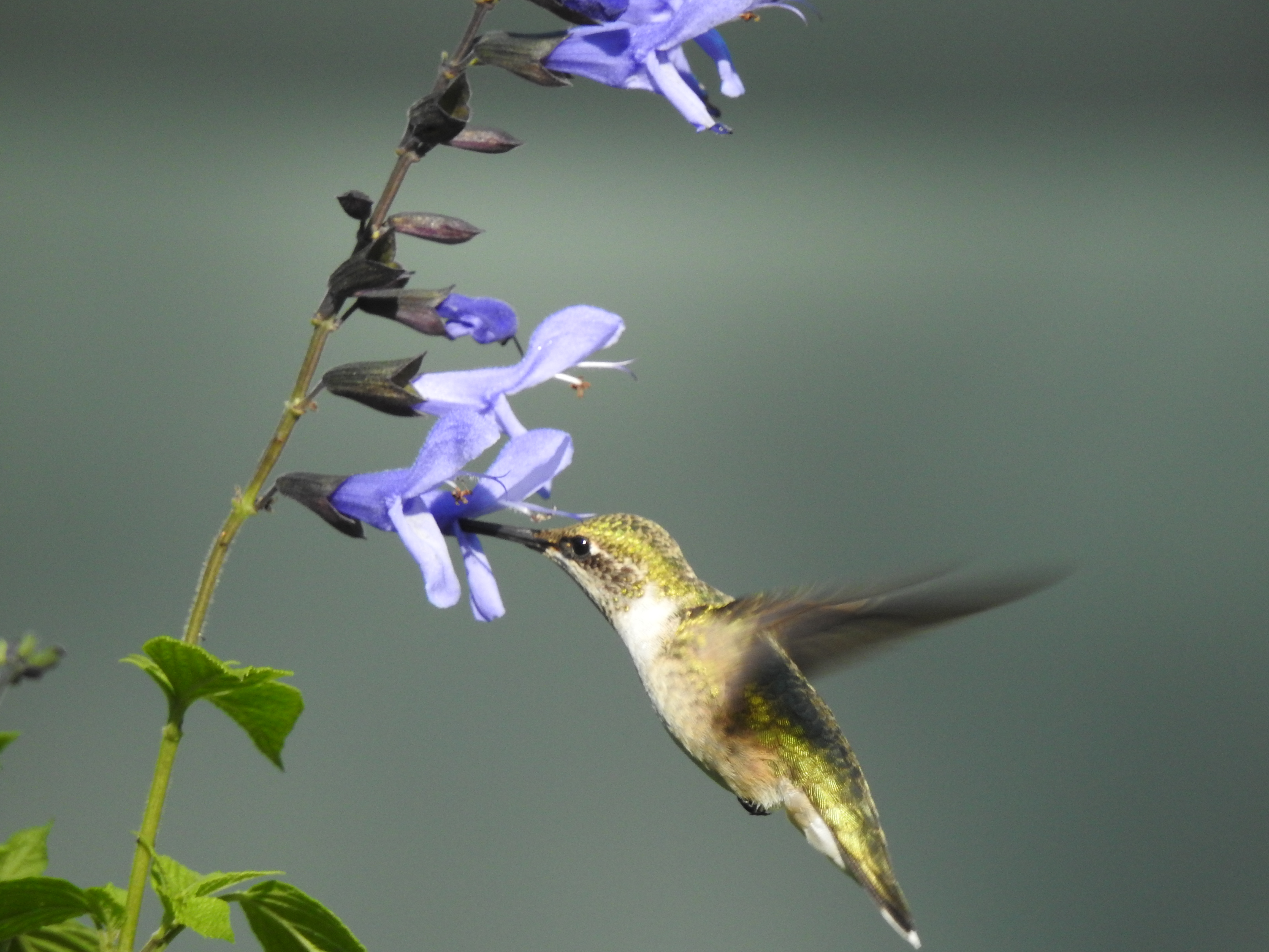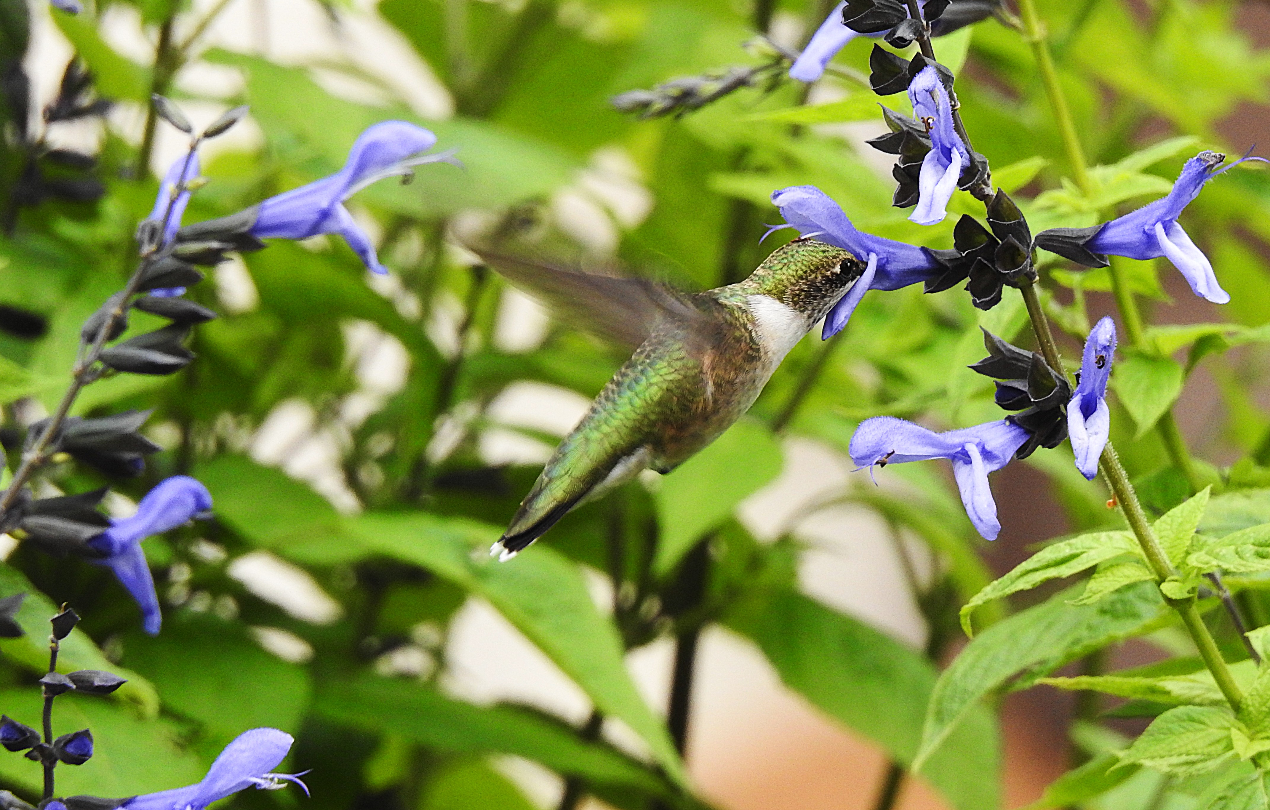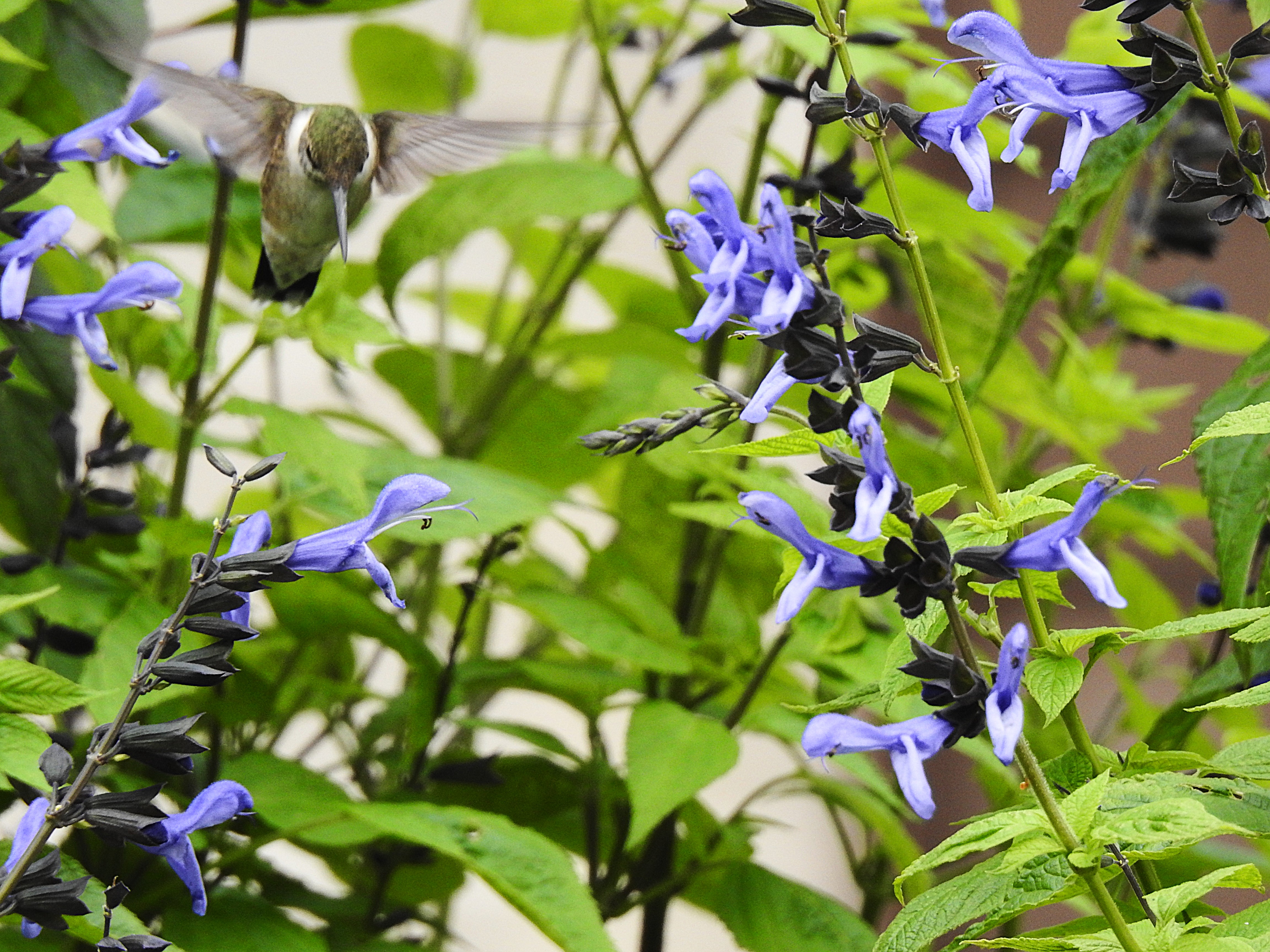 I a short clip of one of my Ruby Throated hummingbirds in flight. She was among the Black and Blue Salvias and Vermillionair cuphea. I grow for them and the bumble bees. The girls and the young that they are raising in my yard right now are feeding like crazy, as they prepare for their long trip south.