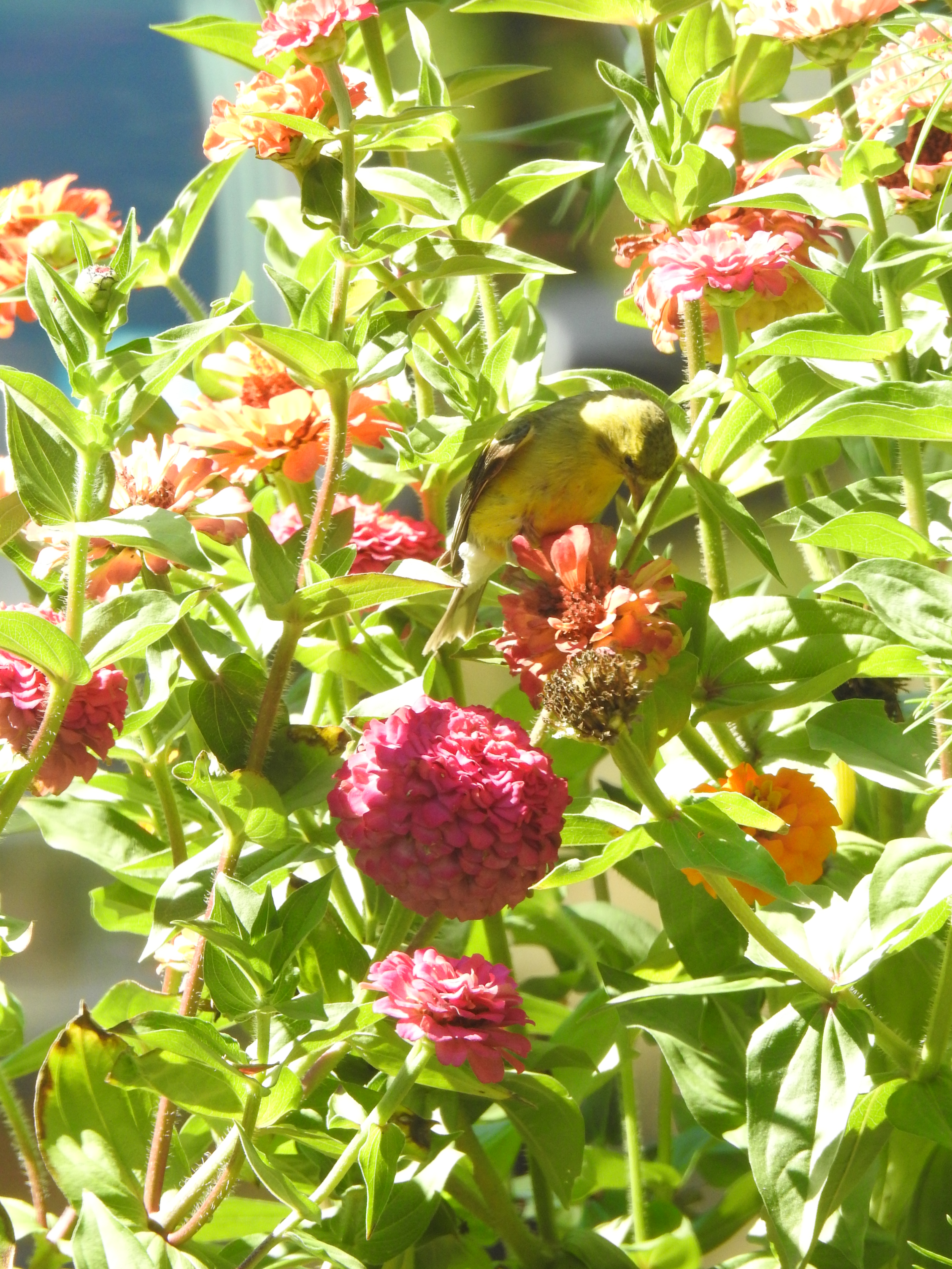 Goldfinch must have been eyeing my raised beds full of assorted annuals.
