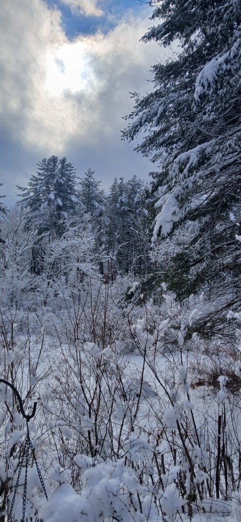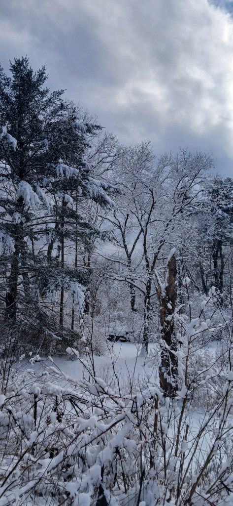 The river has been mostly frozen in my section. All that heavy rain and ice we got also flooded the lower yard. I noticed the Bobcat came through early morning once again (footprints in the yard were not filled in. It walks right below the bedroom window.