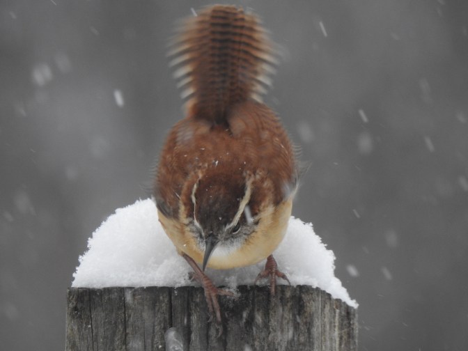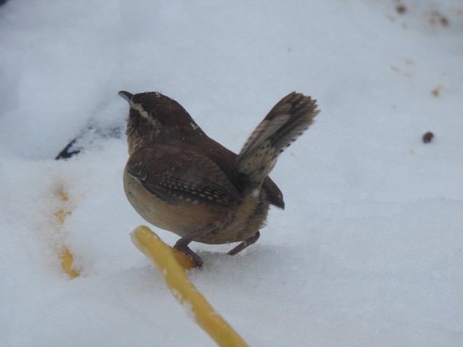 The tiny brown bird is a Carolina Wren.