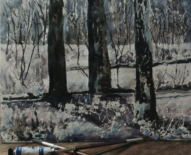 I will come home and eat something. I will then try a woods scene again. Maybe a home or barn with people or animals. I never know what direction a piece will go in.