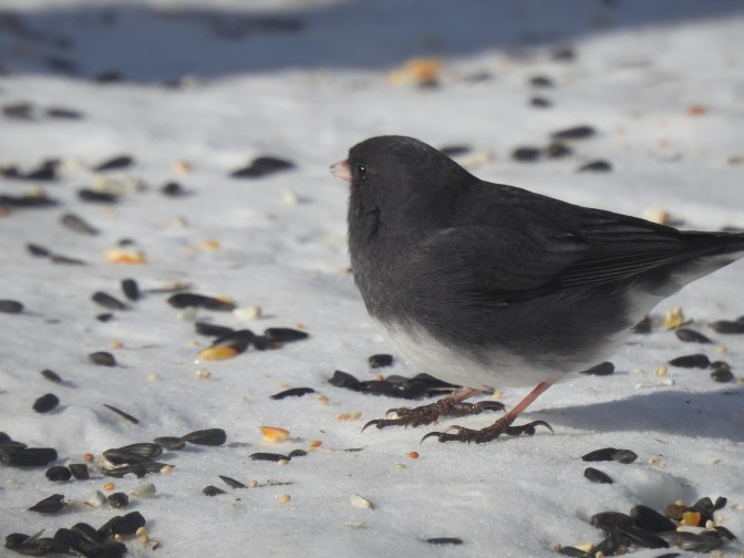 Dark Eyed Junco’s are another bird I adore. They come up to my door always asking for a handout. They will leave when my summer visitors arrive. They will head up north as they love the snow or the generous homeowners that fatten them up. I miss them each time they leave only to be replaced by Baltimore Orioles.