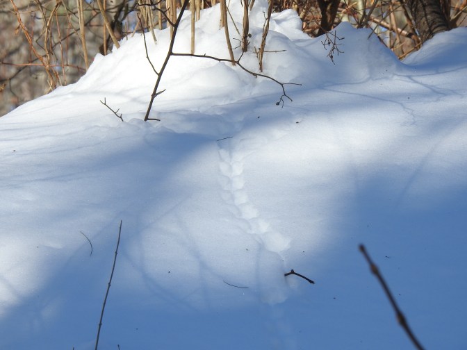 Deer or Bobcat as they climbed the snowbank into the yard.