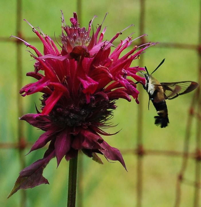 Bee Balm not only attracts Hummingbirds but moths such a this clearwing that others call a Hummingbird Moth.